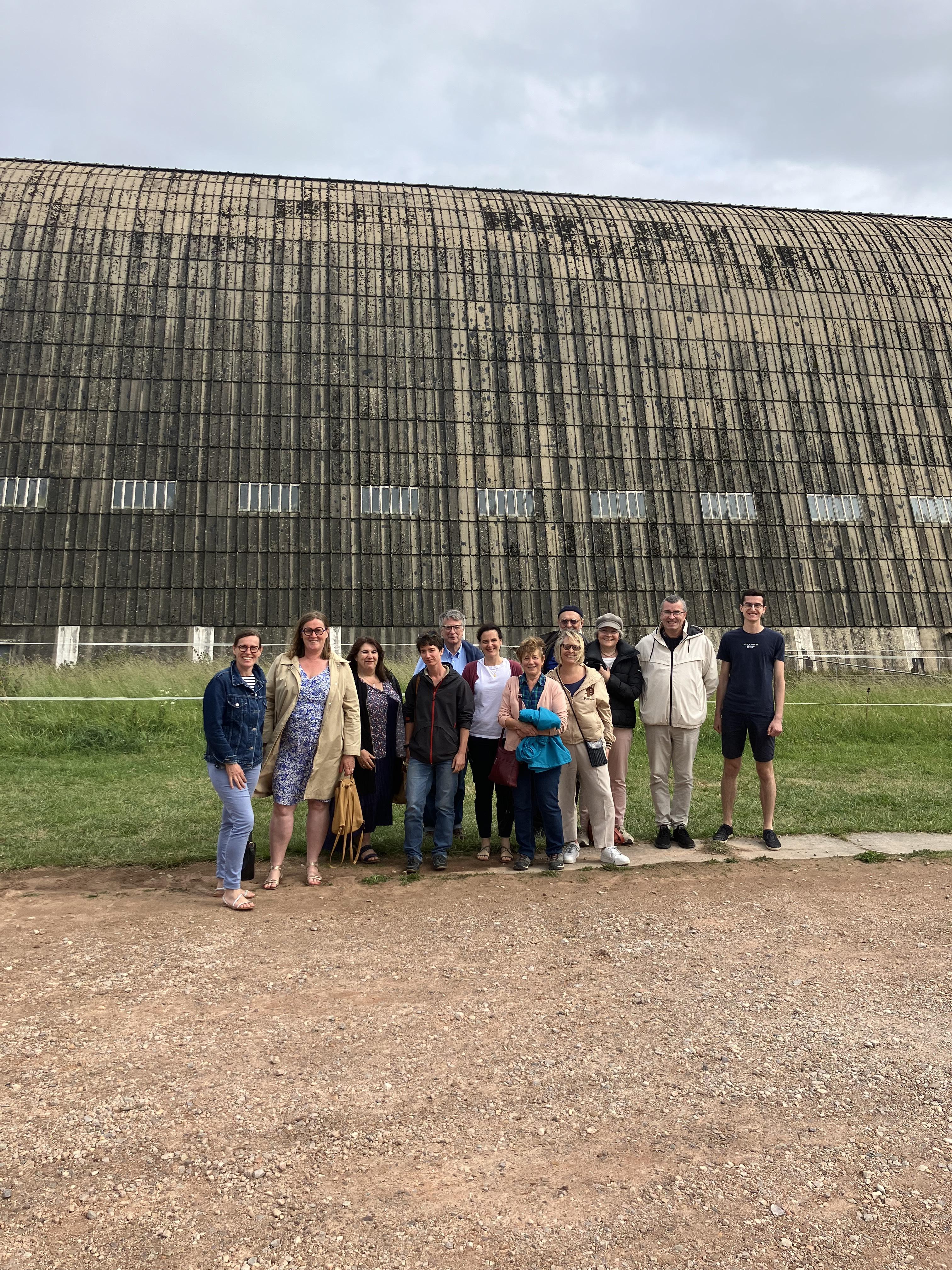 Après plusieurs années de somnolence et une réunification des Basse et Haute Normandie(s), nous nous sommes retrouvés, mercredi 10 juillet 2024, anciennes élèves, maris et enfants, dans un lieu remarquable chargé d’histoire (la première et la seconde Guerre Mondiale, ainsi que la Guerre Froide), à savoir le Hangar à dirigeables d’Écausseville (Manche).
